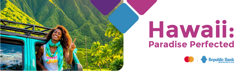 During the period September 5 – November 28, 2025, every XCG$700 you spend with your Republic Bank Mastercard, will earn you a chance to win the Grand Prize of a Priceless Experience for 2 persons to Honolulu, Hawaii!
